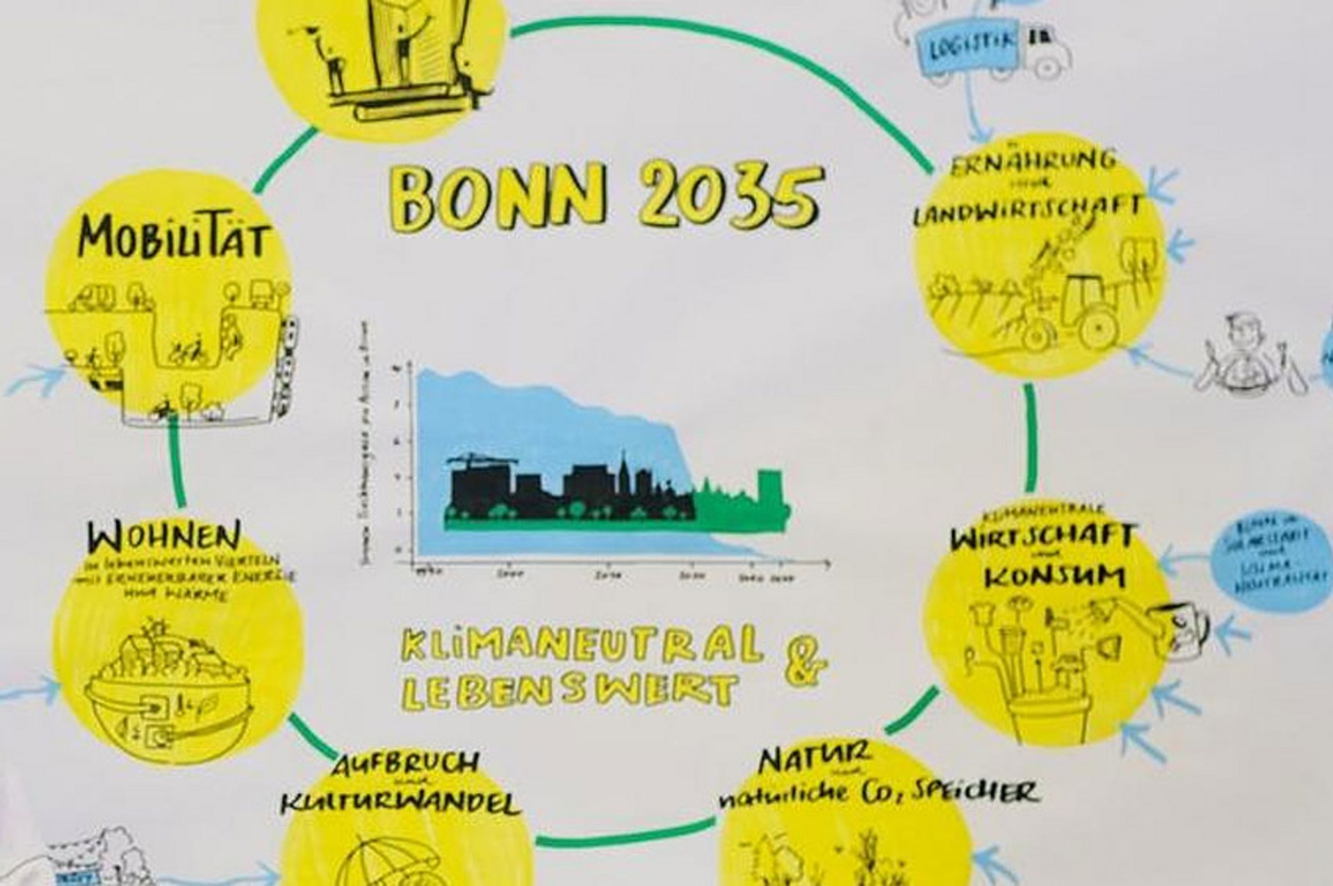 Das Mitwirkungsverfahren Bonn4Future zielt darauf ab, Bonn bis 2035 klimaneutral zu gestalten. Bürger*innen können sich aktiv an der Gestaltung einer nachhaltigen Stadt beteiligen.